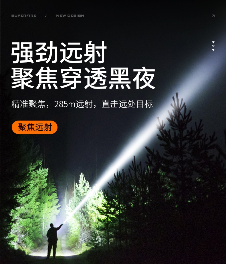 6、最高420Lm亮度,最遠(yuǎn)285m 射程,小身材大能量。