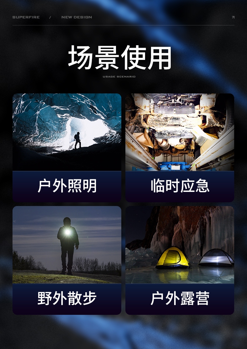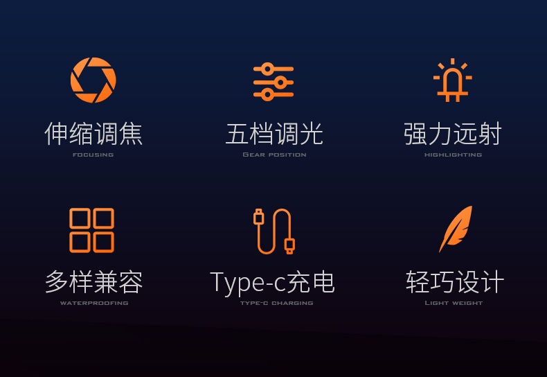 1、伸縮調(diào)焦、聚泛隨心。 2、多電池兼容,兼容21700/18650/3AAA電池。