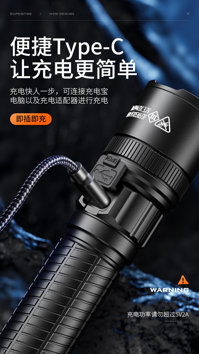 四檔調(diào)光 Type-C充電 電量顯示 鋁合金筒身 持久續(xù)航 強(qiáng)力防水