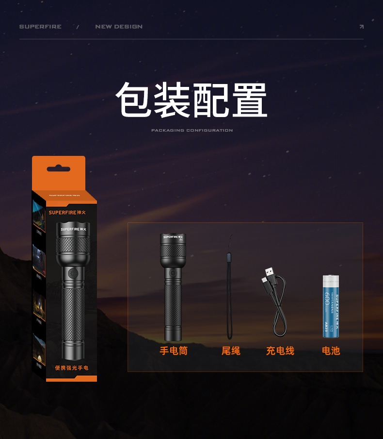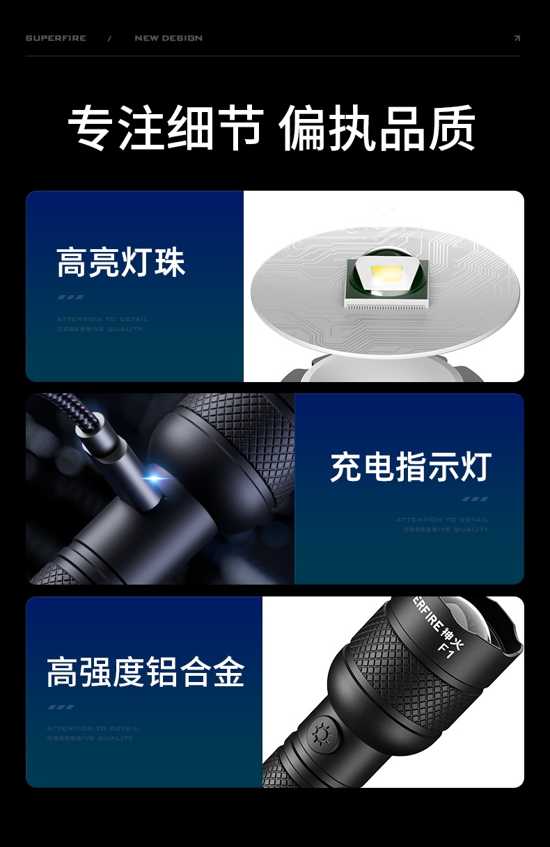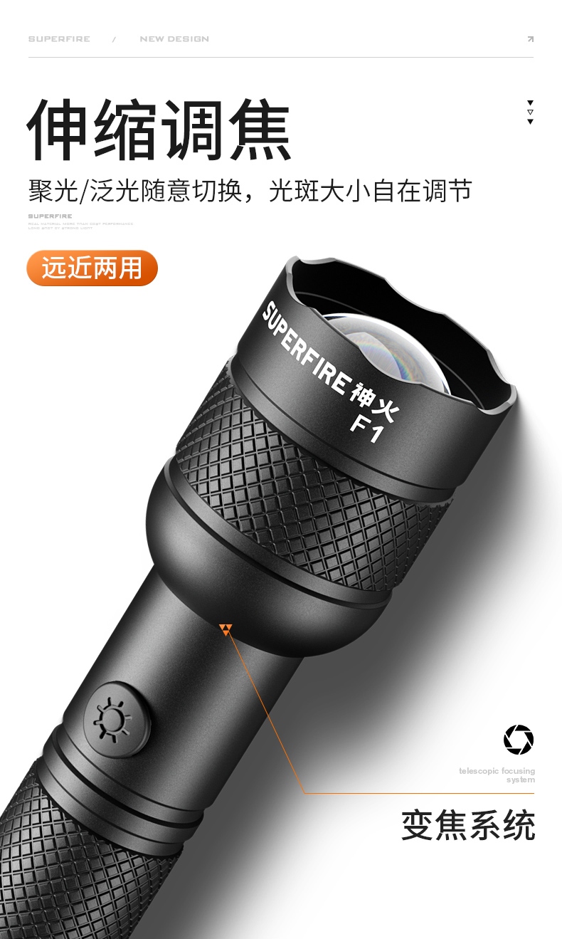 1、千米遠射,射程更遠,光斑更聚焦。 2、進口燈珠,亮度高,照明效果更好。 3、前后雙按鍵,光源一鍵點亮,高亮瞬間開啟。