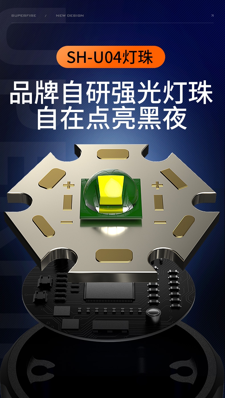 1、大尺寸鋁合金光杯,光斑更圓潤。 2、新型高亮遠射燈珠,40W大功率,亮度高,照明效果好。
