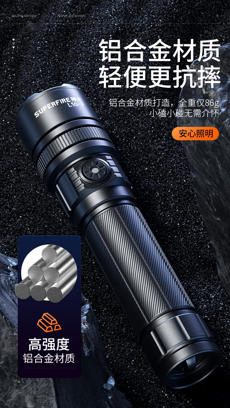 3、鋁合金筒身、防摔抗擊。