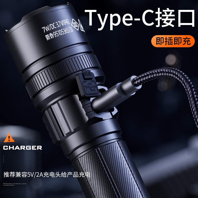 四檔調光 Type-C充電 電量顯示 鋁合金筒身 持久續航 強力防水