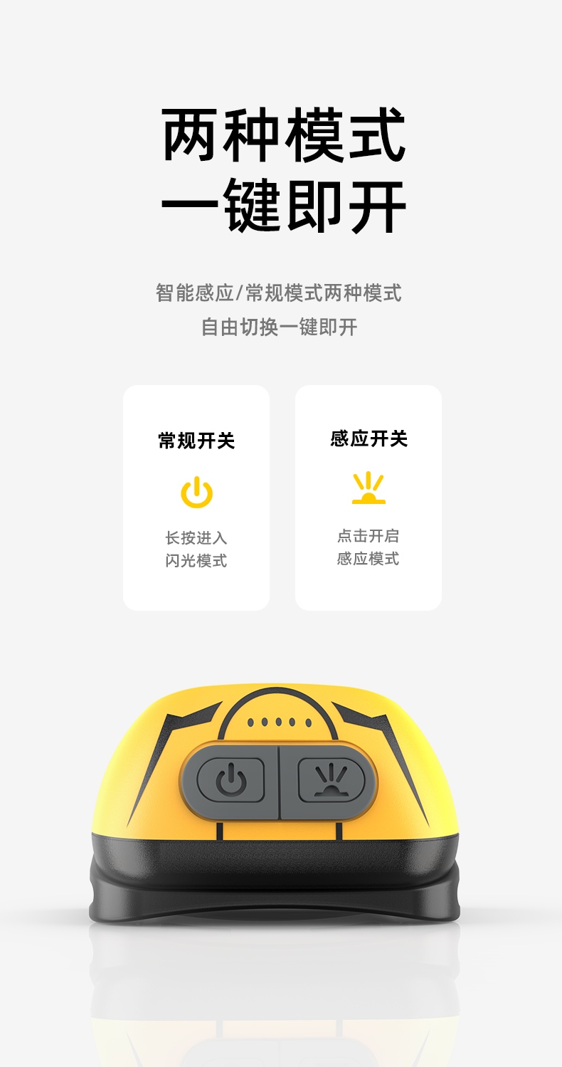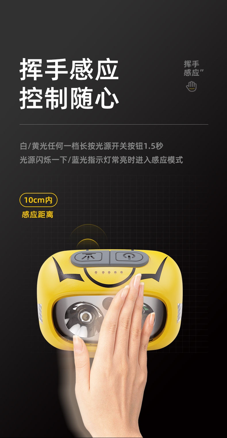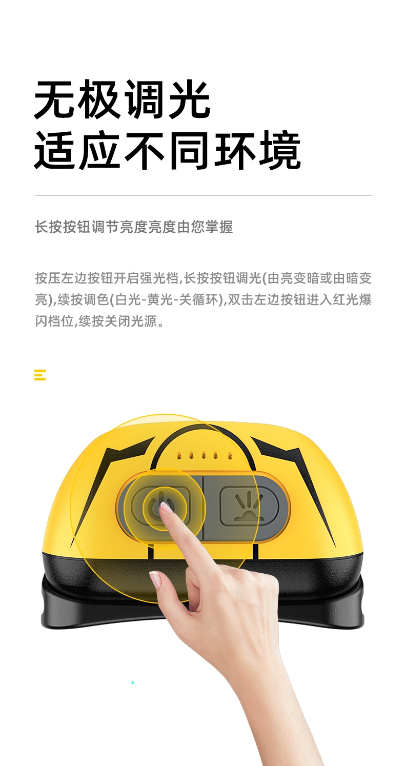 三光源(白光+黃光+紅光),長按開關(guān)可無極調(diào)光,帶常規(guī)和感應(yīng)雙模式