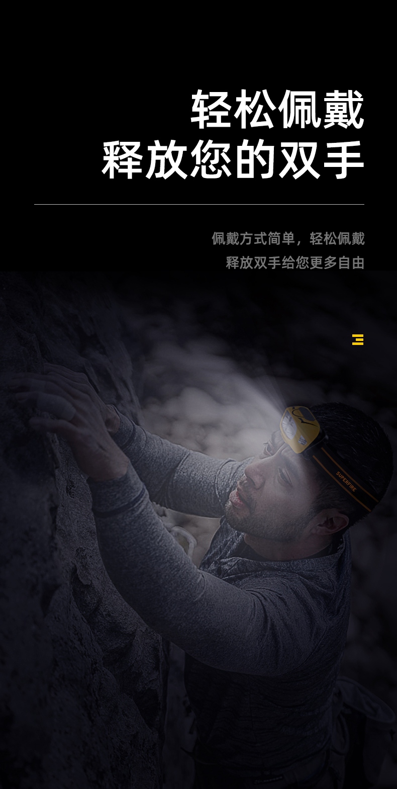 強(qiáng)光亮度,運(yùn)動(dòng)頭燈,前后均衡設(shè)計(jì),輕便不壓頭,可調(diào)節(jié)式頭燈帶,佩戴方便舒適,伸縮調(diào)焦,光照范圍大,照射距離遠(yuǎn),頭燈角度調(diào)節(jié),超90度角度隨意調(diào)節(jié),適宜各種環(huán)境使用