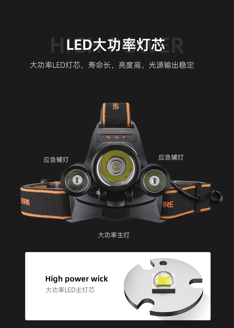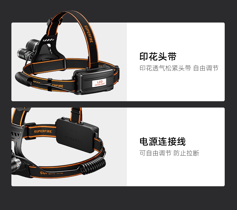 SUPERFIRE神火三燈頭大功率頭燈HL33