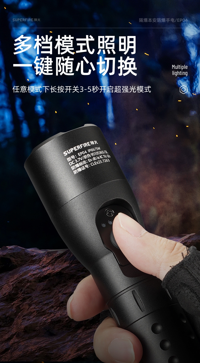 任意模式下長按開關3-5秒開啟超強光模式