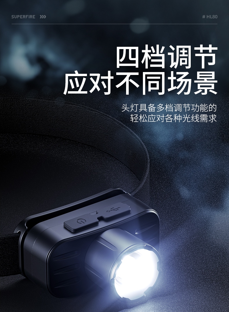 1.單按頂部開關(guān)按鍵開啟即強(qiáng)光檔 ,續(xù)按調(diào)檔(強(qiáng)光-弱光-爆閃-關(guān))可循環(huán)調(diào)檔。長(zhǎng)按開關(guān)按鍵3秒左右開啟即SOS檔,續(xù)按關(guān)閉光源。 2.可調(diào)節(jié)式松緊帶:佩戴方便舒適。 3.頭燈角度調(diào)節(jié):超60°角度隨意調(diào)節(jié),適宜各環(huán)境使用。