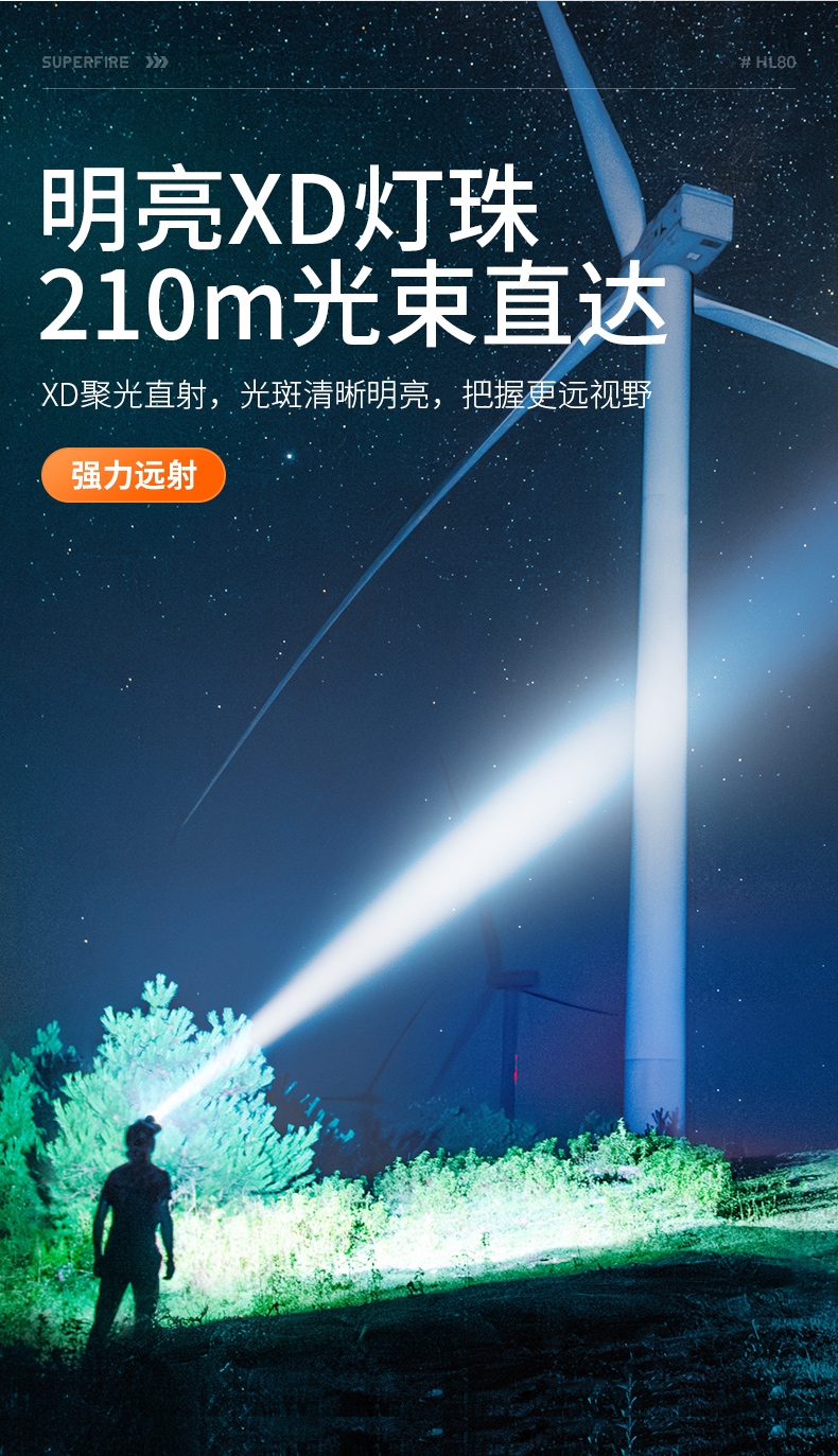 4.頭燈角度調(diào)節(jié):超60°角度隨意調(diào)節(jié),適宜各環(huán)境使用。