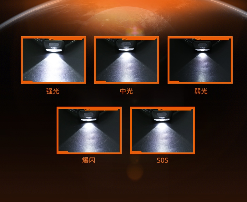 1、四檔一體:強、弱、爆閃、SOS自由切換,可滿足不同場景下的使用需求。