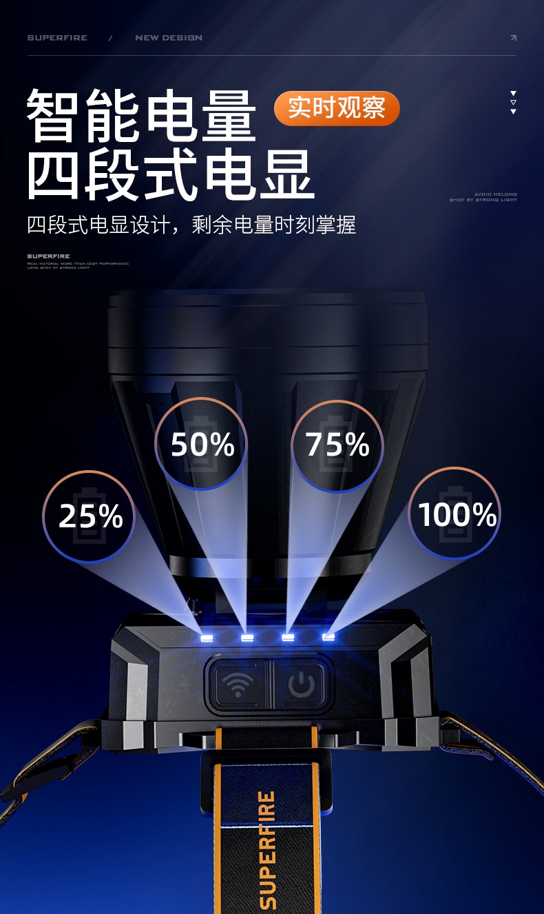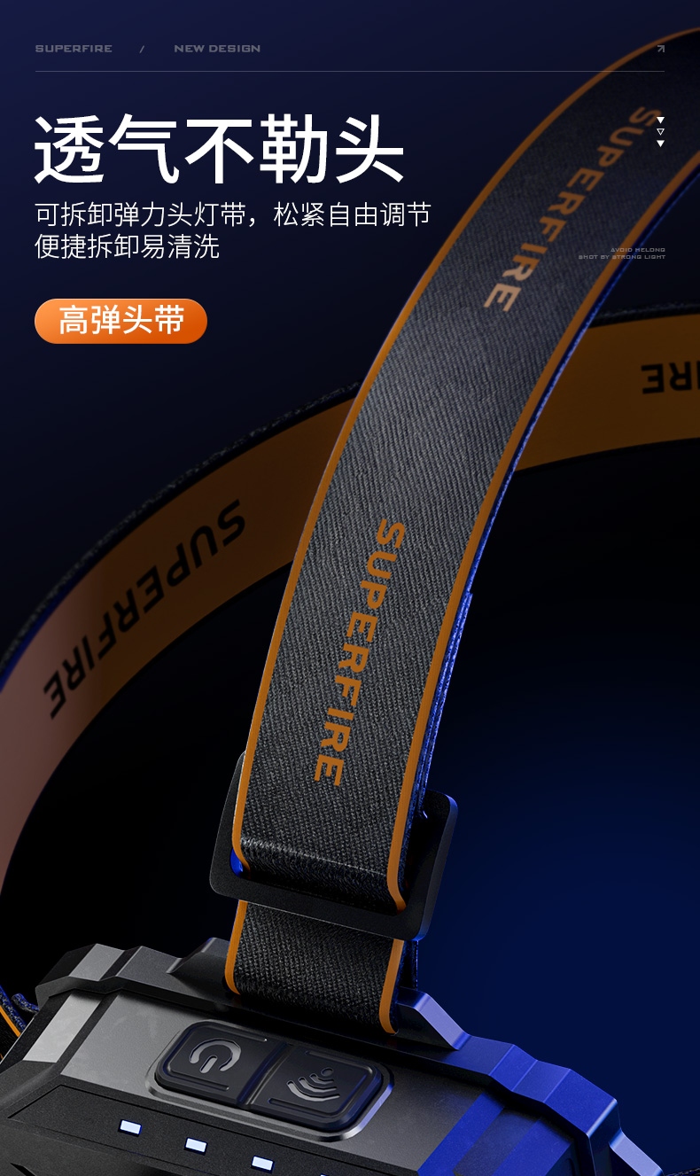 強(qiáng)光亮度,運(yùn)動(dòng)頭燈,前后均衡設(shè)計(jì),輕便不壓頭,可調(diào)節(jié)式頭燈帶,佩戴方便舒適,伸縮調(diào)焦,光照范圍大,照射距離遠(yuǎn),頭燈角度調(diào)節(jié),超90度角度隨意調(diào)節(jié),適宜各種環(huán)境使用