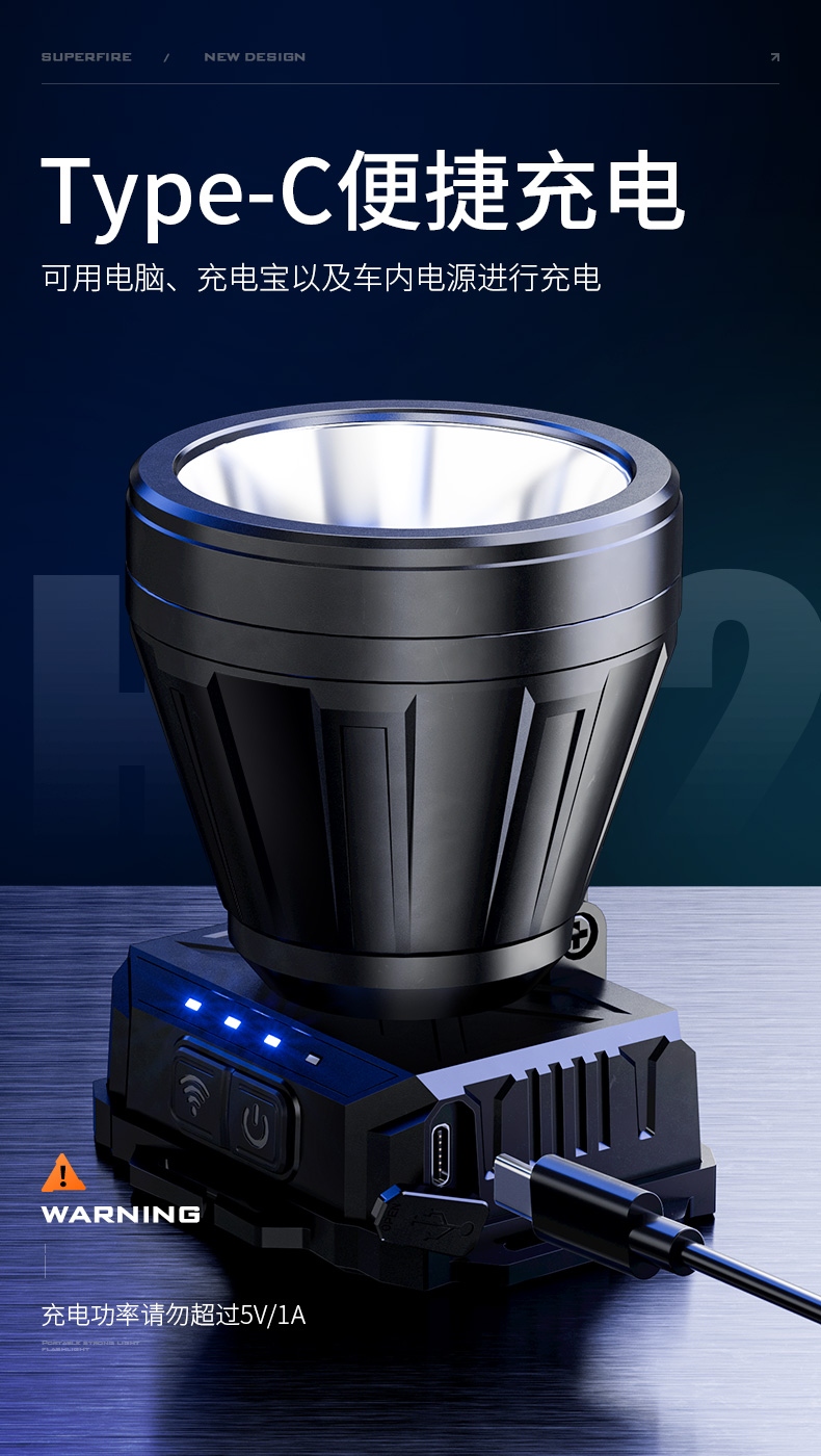 1.單擊左邊開(kāi)關(guān)開(kāi)啟感應(yīng)功能,同時(shí)開(kāi)啟強(qiáng)光檔,續(xù)按關(guān)閉感應(yīng)功能(關(guān)閉感應(yīng)功能,光源不會(huì)關(guān)閉),當(dāng)感應(yīng)功能開(kāi)啟時(shí),單擊右邊開(kāi)關(guān)可正常調(diào)節(jié)檔位。 2.多樣化充電,使用方便:設(shè)有Type-c充電口,可使用充電器、充電寶、電腦等設(shè)備為燈具充電。 3.電量顯示:實(shí)時(shí)