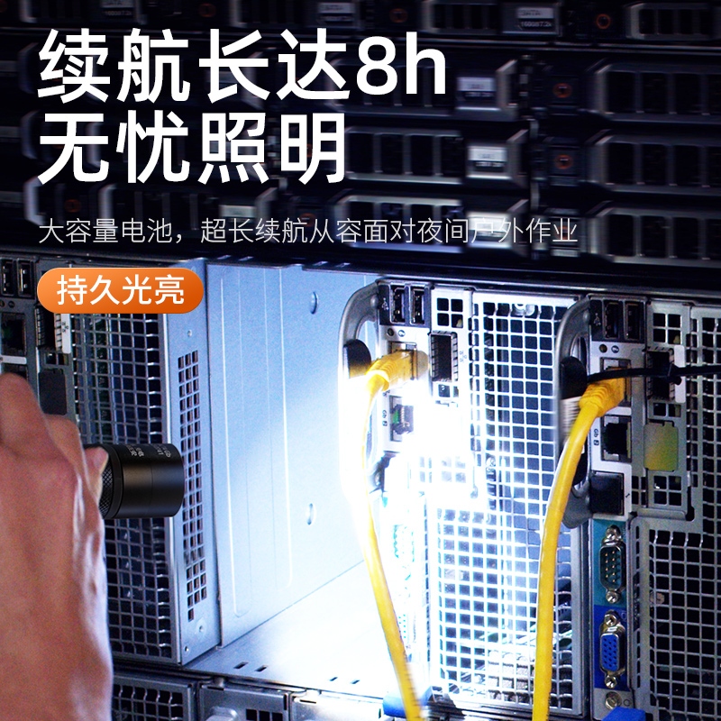 聚光主燈 亮度隨心 輕按后端開關按鈕,主燈強光點亮,續按依次切換主燈工作光-爆閃光。主燈開啟狀態下長按5秒,可實現光源色溫轉換。主燈關閉狀態下長按5秒,可開啟燈具最亮照明模式。 爆亮強光 亮如白晝 1500LM大功率高亮光源,點亮頃刻如白晝