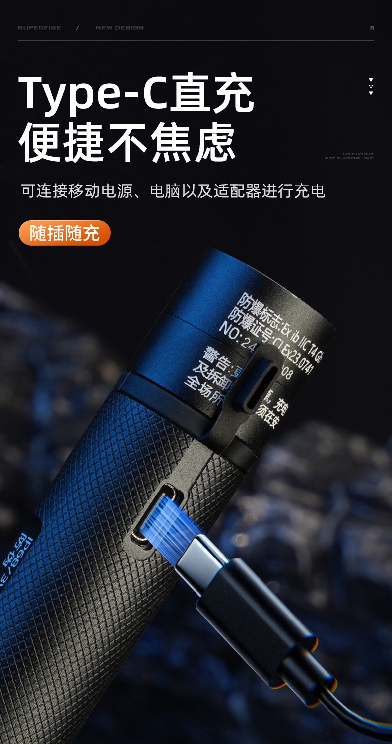 四檔調光 Type-C充電 電量顯示 鋁合金筒身 持久續航 強力防水