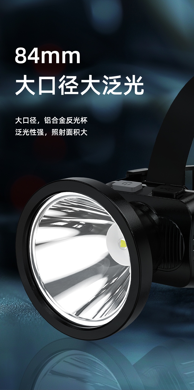 1、超大光杯,聚光性好,亮度高。 2、可調節式松緊帶:佩戴方便舒適。 3、頭燈角度調節:超90°角度隨意調節,適宜各環境使用。