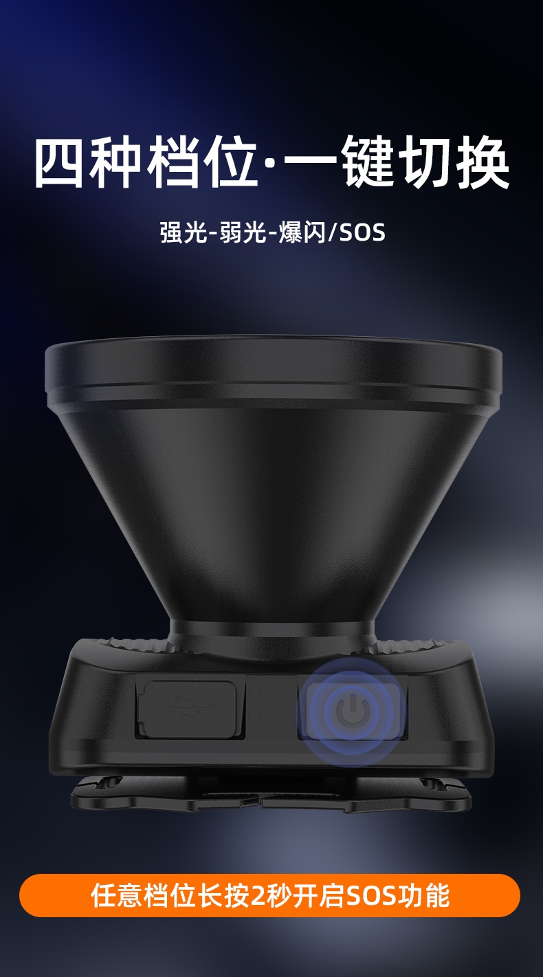 1、強光、弱光、爆閃、SOS四擋使用模式,自由切換,可滿足不同場景下的使用需求 。