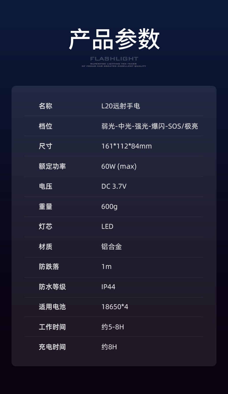 5、續(xù)航約5-8H,有效滿足長時間照明使用。