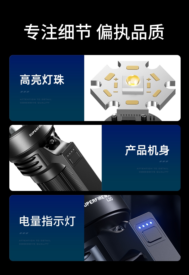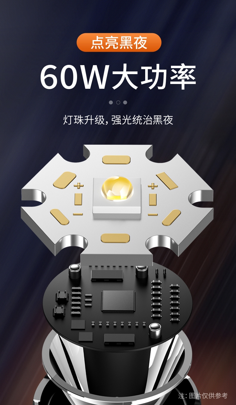 3、新型高亮遠射燈珠,60W大功率,亮度高,照明效果好。