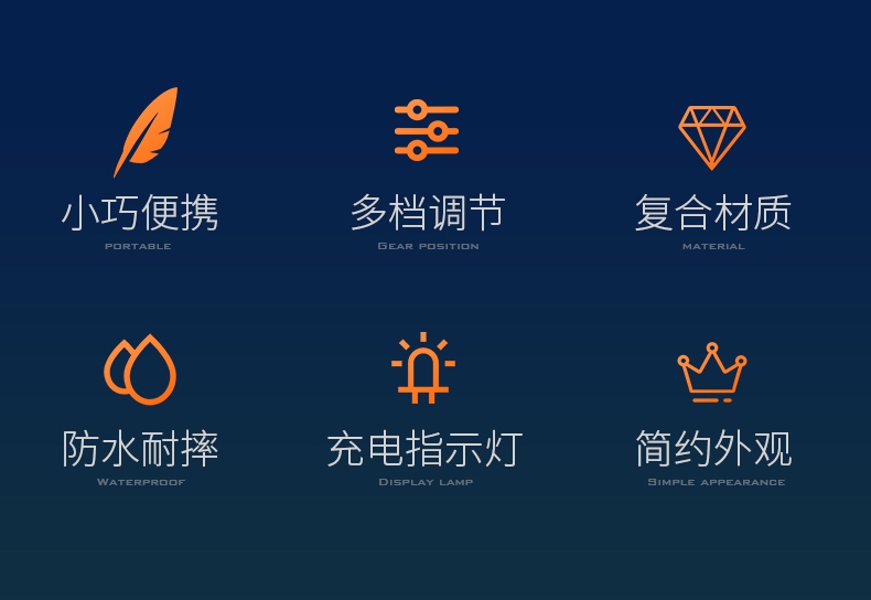 1、四檔調光,滿足不同場景下的使用需求; 2、小巧便攜,重量輕,攜帶更方便; 3、帶充電指示燈,充電狀態一目了然 .