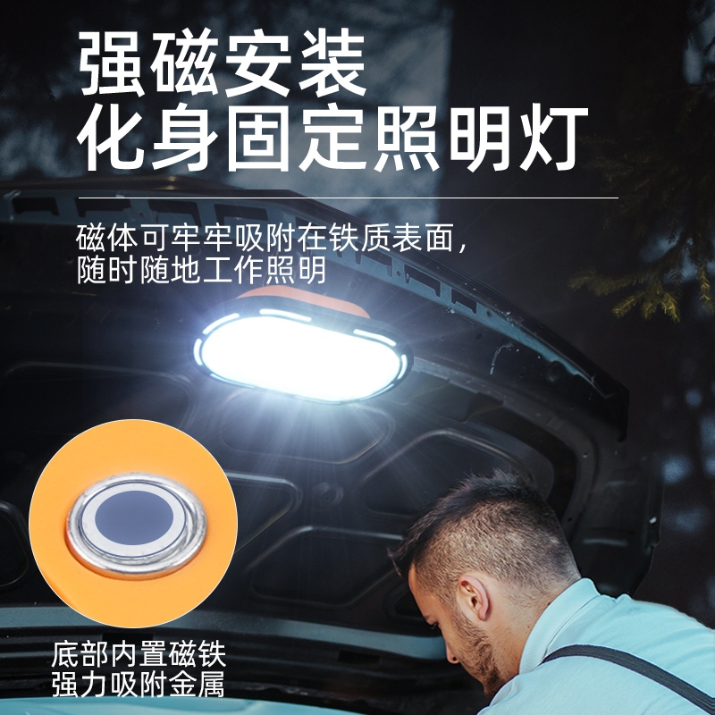 3、底部強磁,化身固定照明燈,磁體可牢牢吸附在鐵質表面,隨時隨地工作照明;