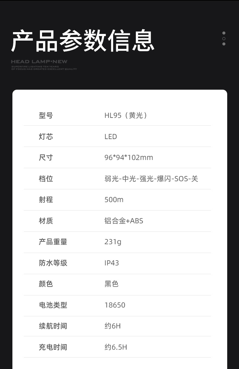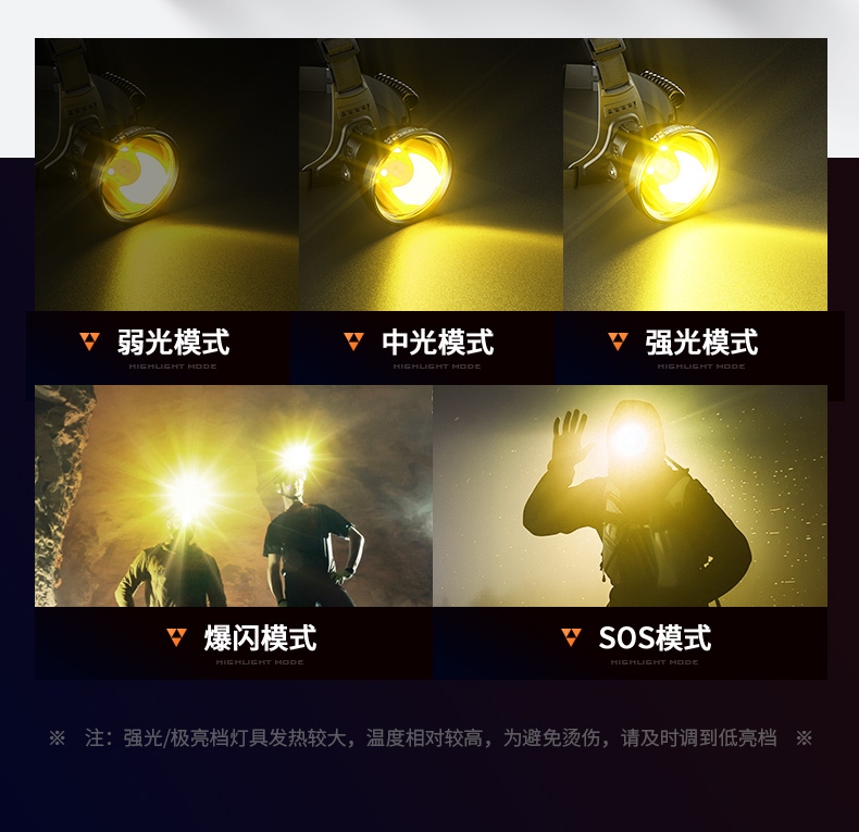 1、五檔一體:弱中強(qiáng)、爆閃、SOS自由切換,可滿足不同場(chǎng)景下的使用需求 。