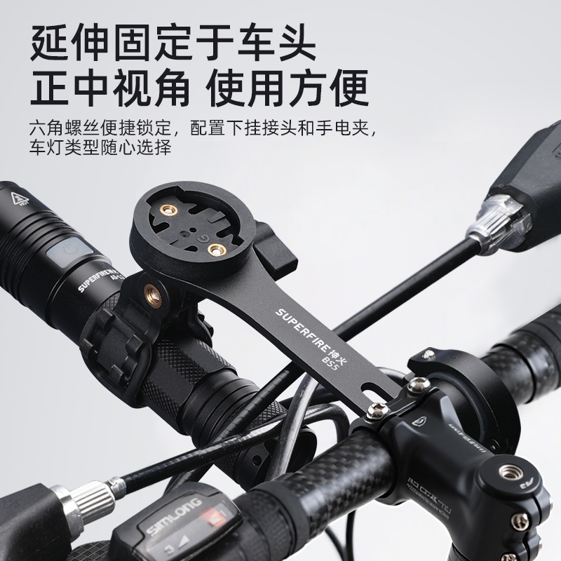 1、通過支架外伸在車頭安裝碼表及車燈,無需占用車頭把多余空間;