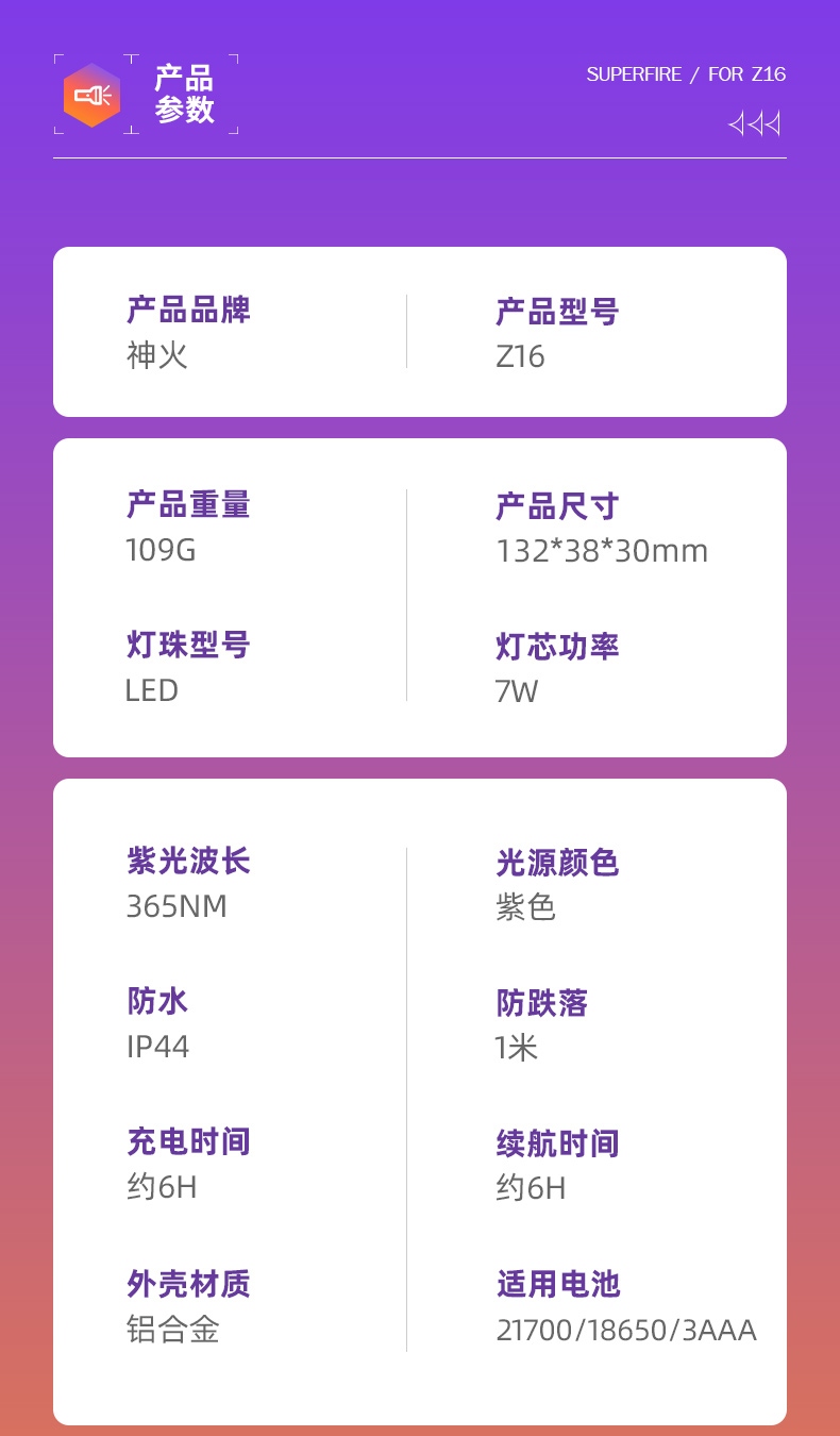 1、紫光手電,配有黑鏡:可用于驗鈔、識別熒光劑,寵物病菌檢測,鑒別琥珀、蜜蠟,古玩修補鑒定。 2、單檔開關,操作便捷。 3、小巧精致,外出攜帶更方便。