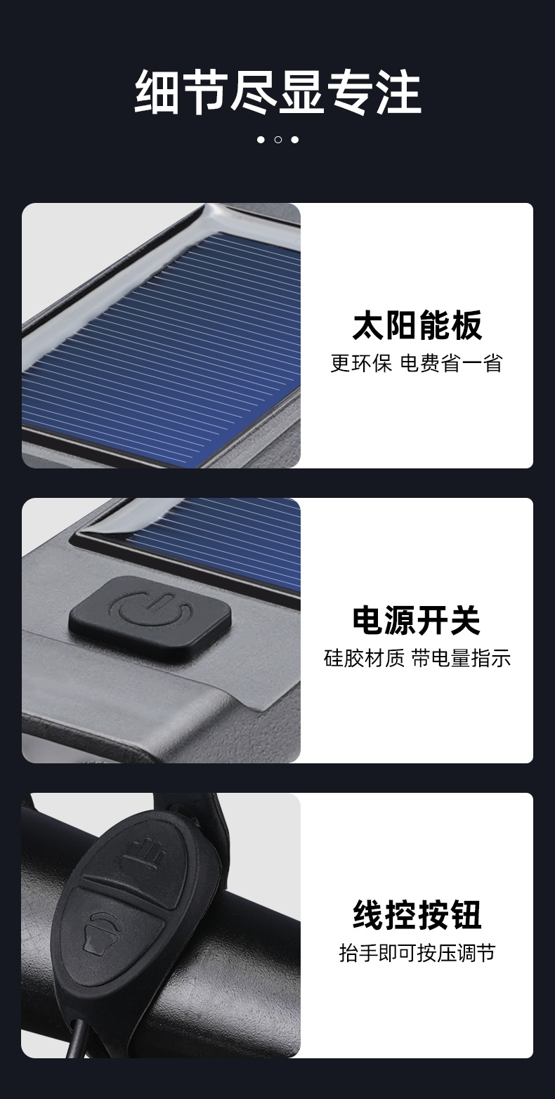 1、多檔調光,可滿足不同使用場景下的照明需求; 2、含提手,握感更舒適。攜帶更簡單; 3、新型高亮遠射燈珠,60W大功率,亮度高,照明效果好。