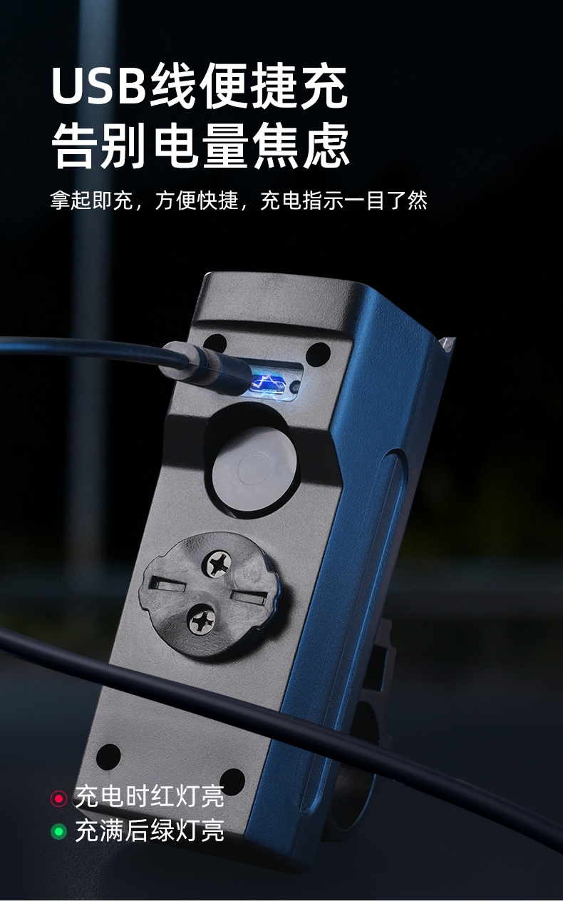 3、充電口帶有充電指示燈,充電時亮紅燈,充滿轉綠燈。