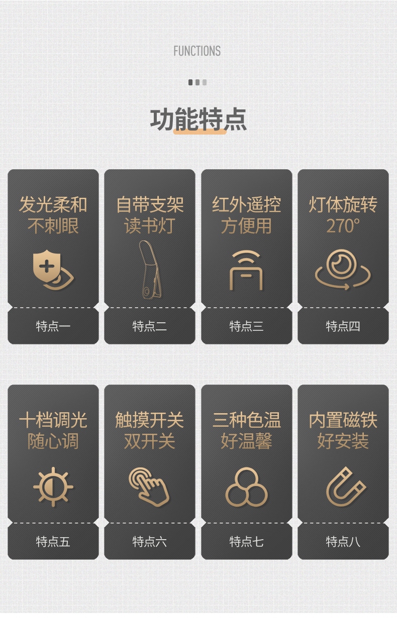 3、亮度調(diào)節(jié)功能:支持多檔亮度調(diào)節(jié),起夜、閱讀所需光源精準(zhǔn)控制。