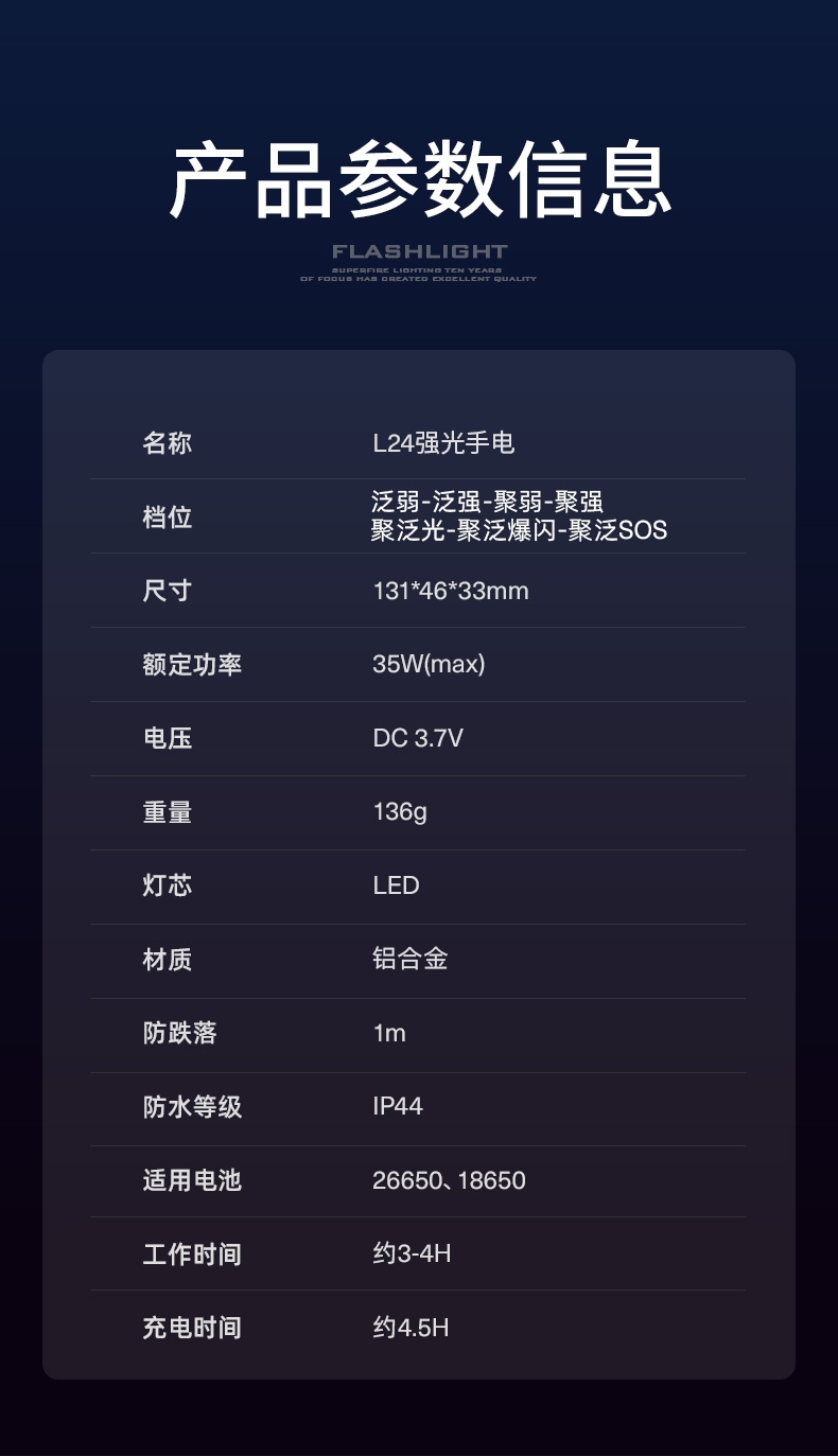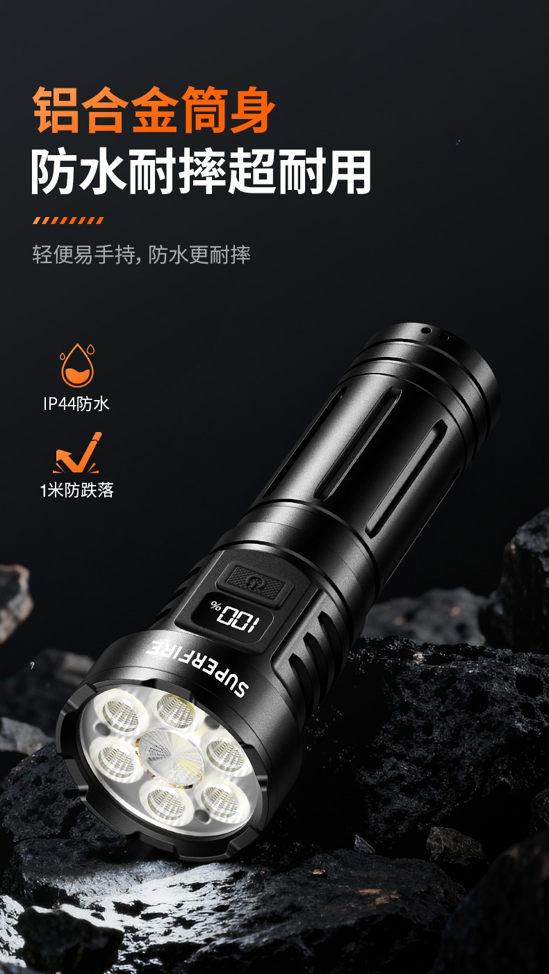 6、鋁合金筒身,防水耐摔。