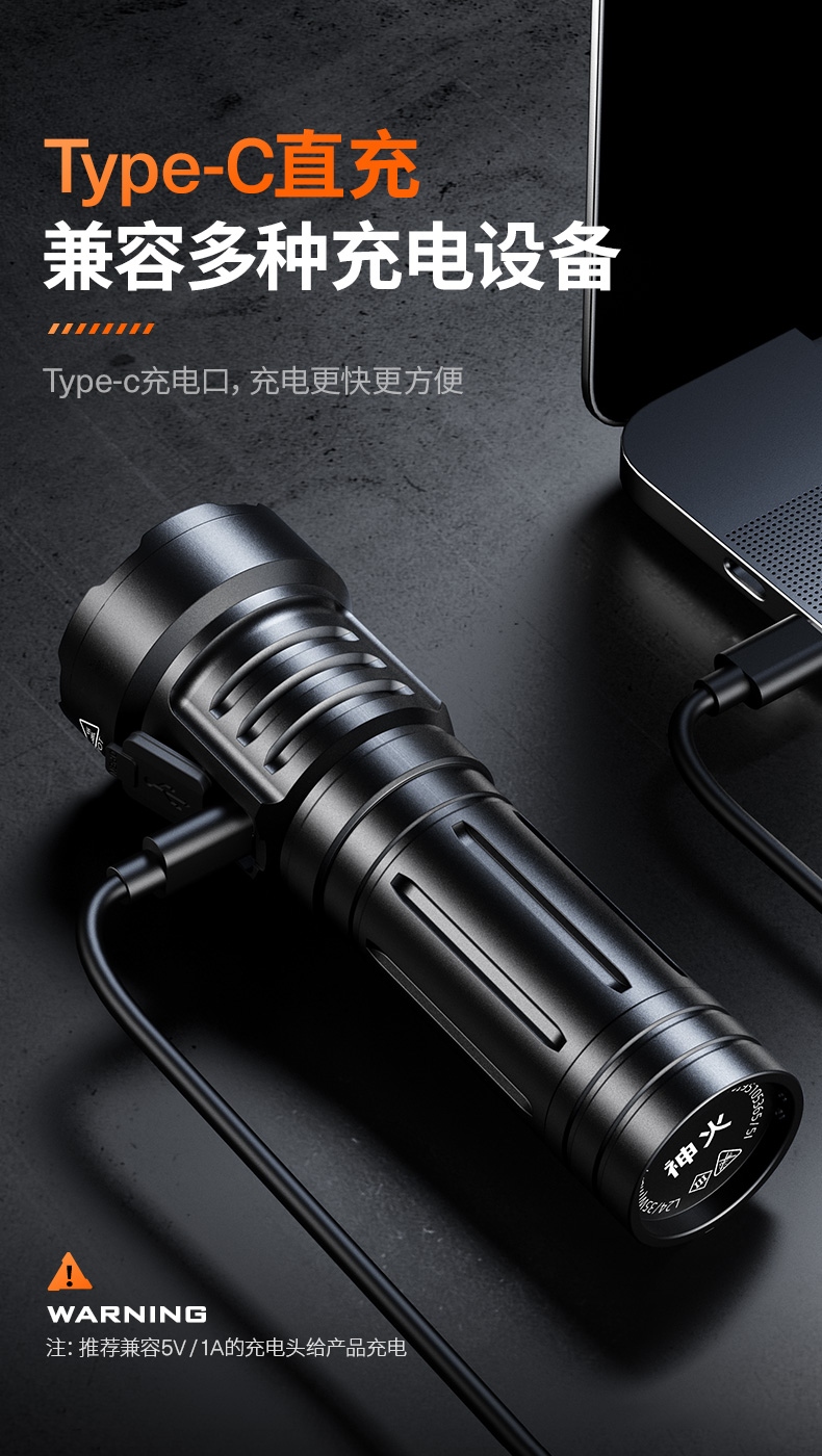 四檔調光 Type-C充電 電量顯示 鋁合金筒身 持久續航 強力防水