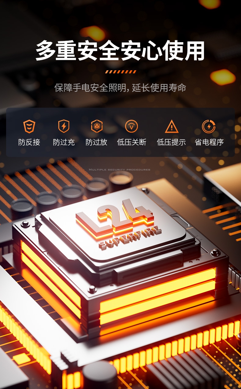 2、多種安全程序,可有效保護手電使用安全,延長手電使用壽命。