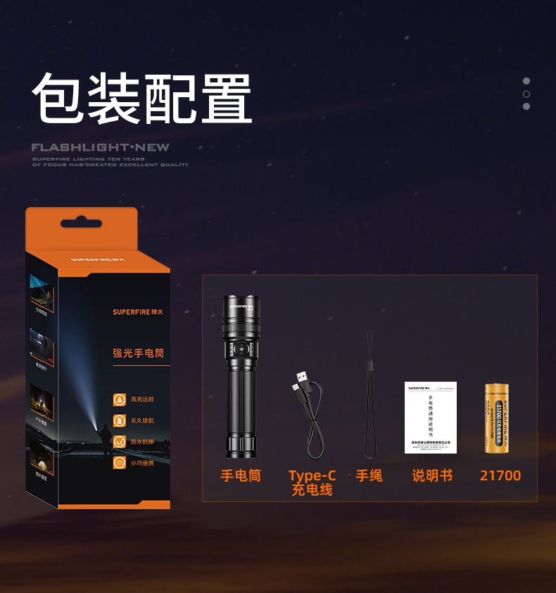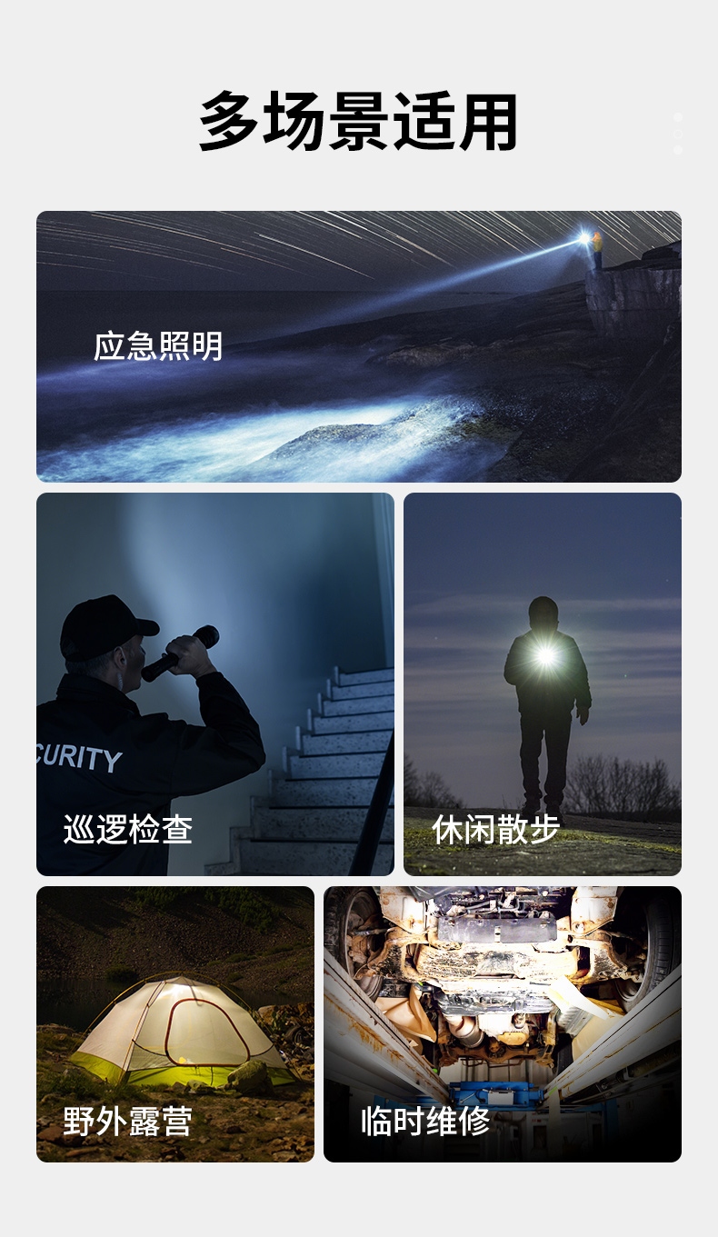 1、五檔調(diào)光、可滿足不同場(chǎng)景下的使用需求 2、精致外觀,時(shí)尚精致,小巧便攜。 3、伸縮調(diào)焦、聚泛隨心。