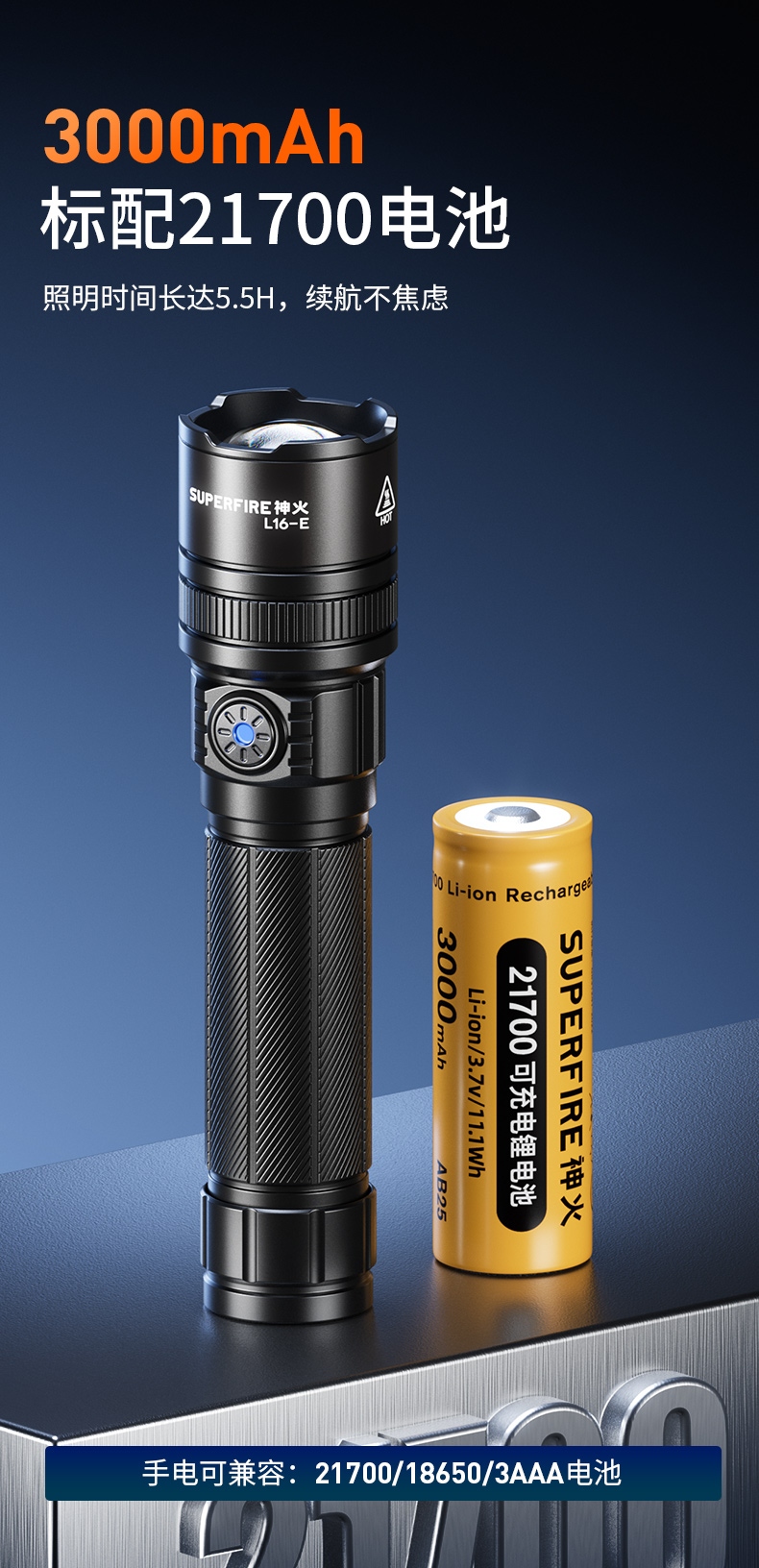 8、多電池兼容,兼容21700/18650/3AAA電池