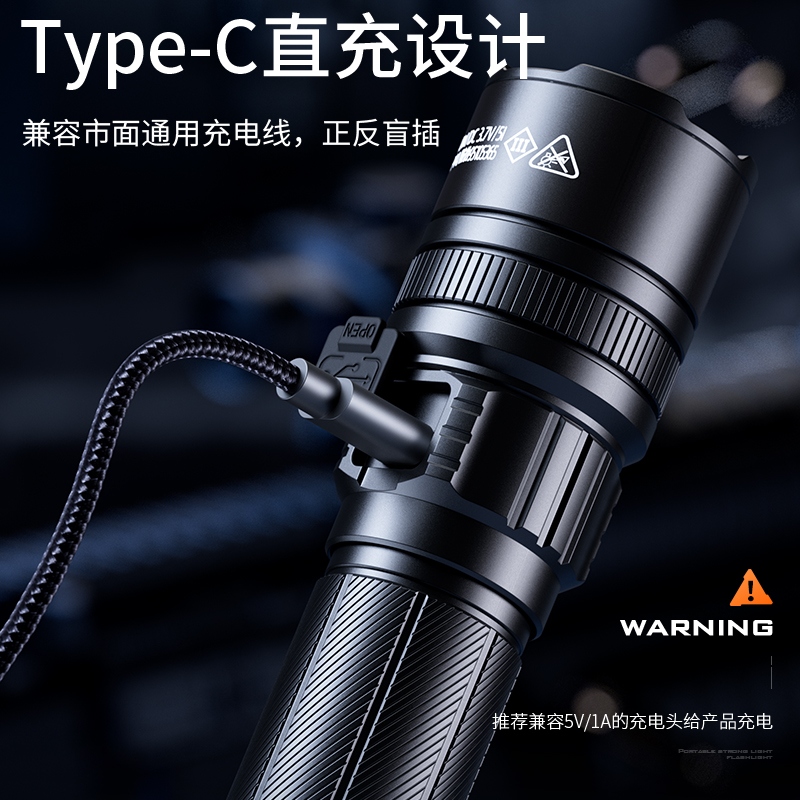 四檔調(diào)光 Type-C充電 電量顯示 鋁合金筒身 持久續(xù)航 強(qiáng)力防水