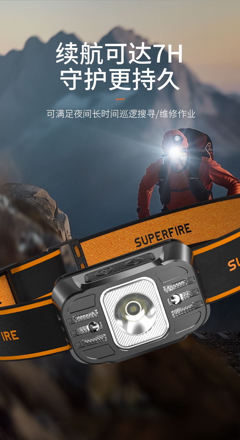 產品中心 > 戶外照明 > 頭燈 > 輕便式頭燈 > SUPERFIRE神火輕便感應頭燈HL75-E