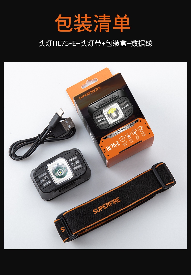 SUPERFIRE神火輕便感應頭燈HL75-E