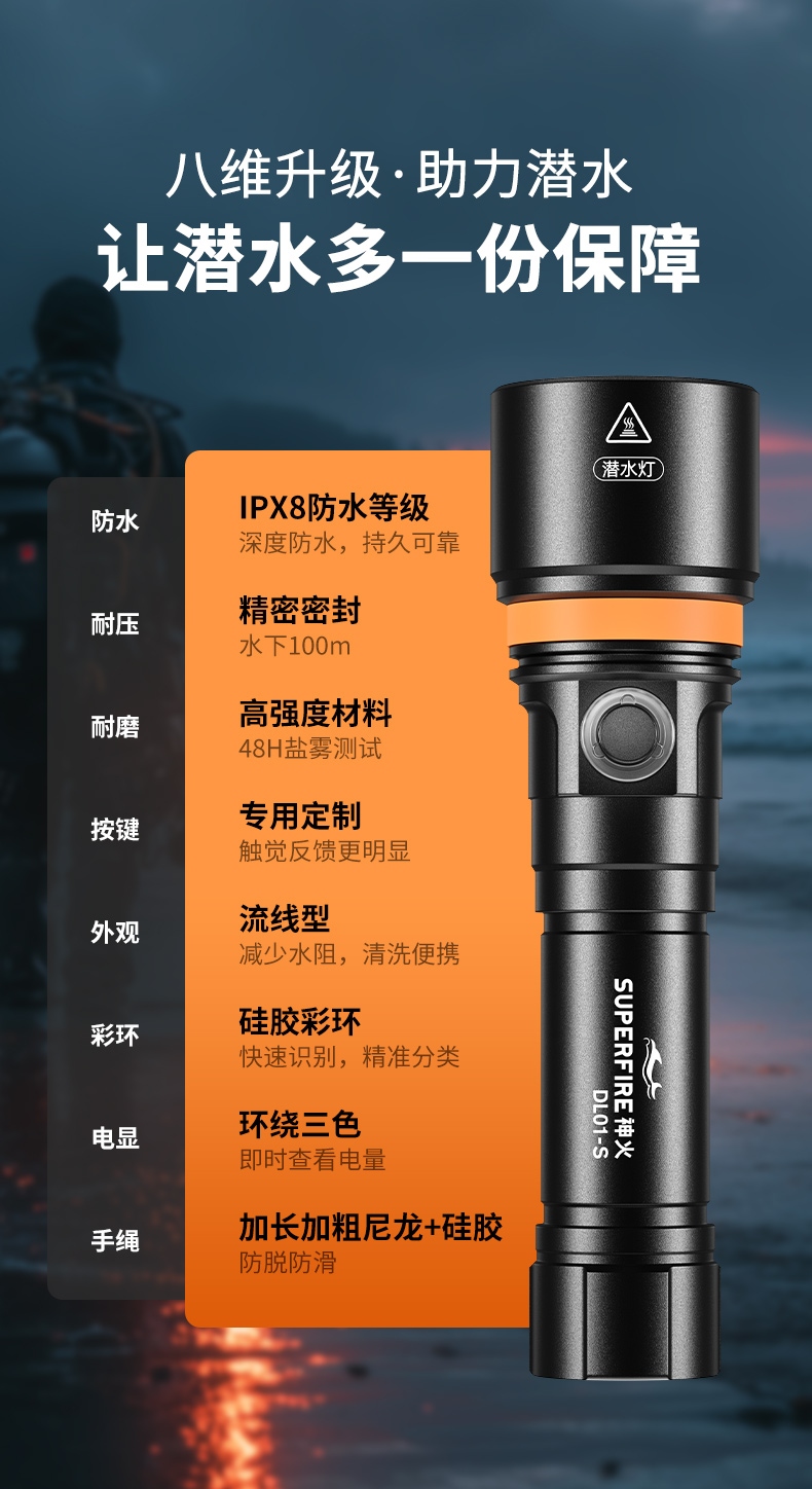 緊湊便攜設計:輕量化設計與人體工學外形相結合,方便攜帶且握持舒適,不會給潛水者帶來額外負擔。