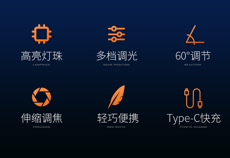 5.多樣化充電,使用方便:設有Type-c充電口,可使用充電器、充電寶、電腦等設備為燈具充電。
