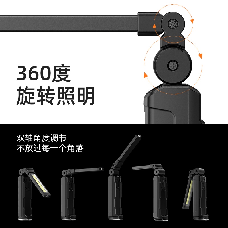 1、此款工作燈有記憶功能,自動記憶上次關閉前的光源及檔位; 2、設有電量指示燈,電量情況一目了然; 3、此手電設有磁吸、掛扣及伸縮固定架,多種固定方式滿足工作需求.