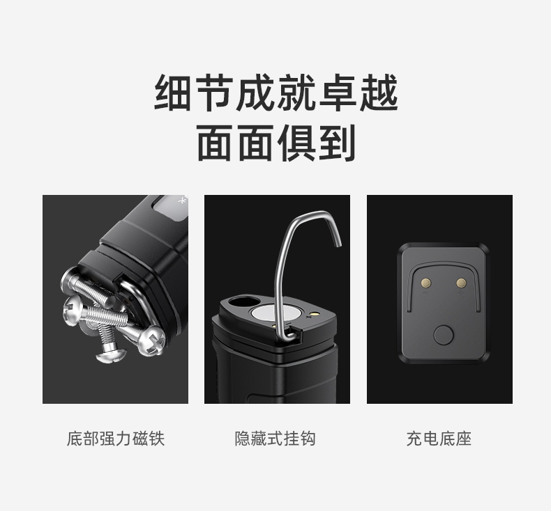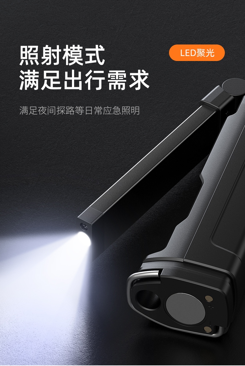 3、此手電設有磁吸、掛扣及伸縮固定架,多種固定方式滿足工作需求.