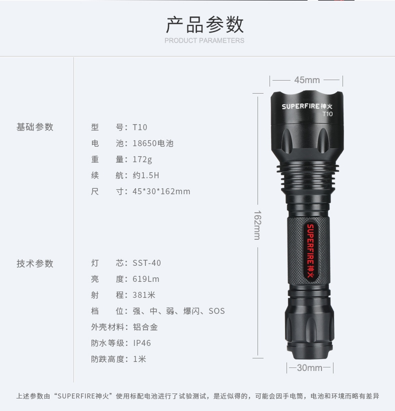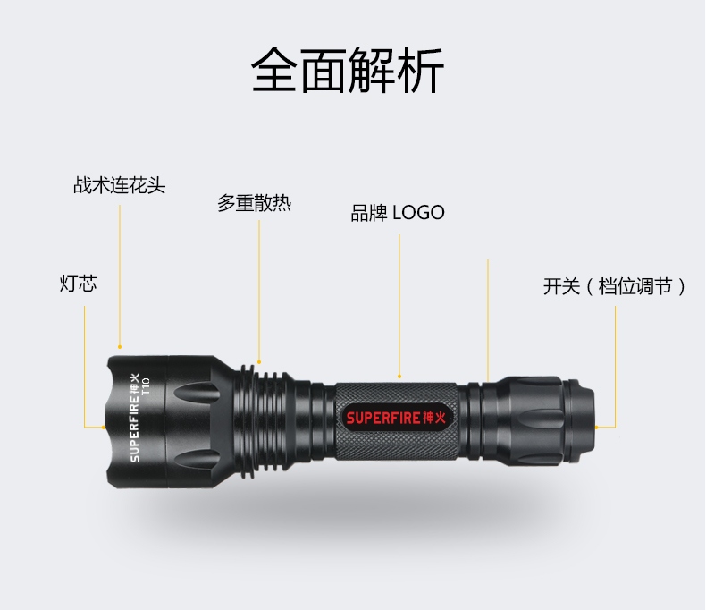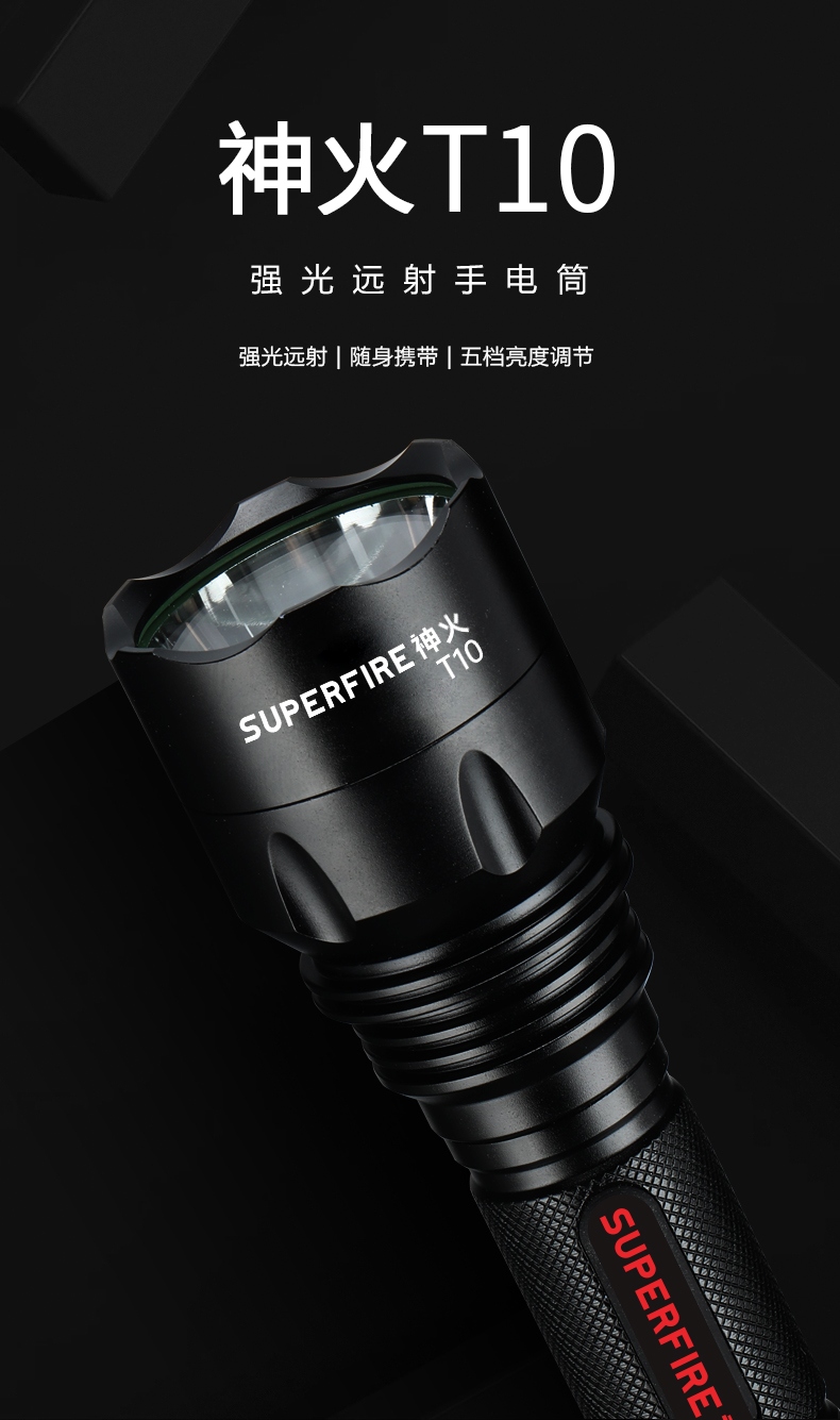 高亮度T10強光手電筒,精致的磨砂LOGO更顯高檔,家用,騎行必備