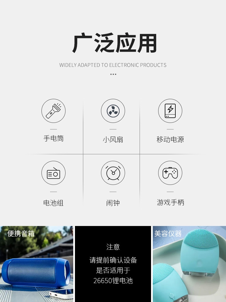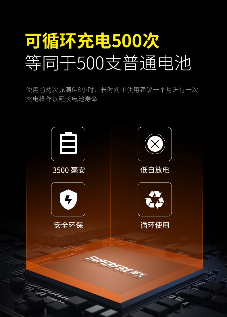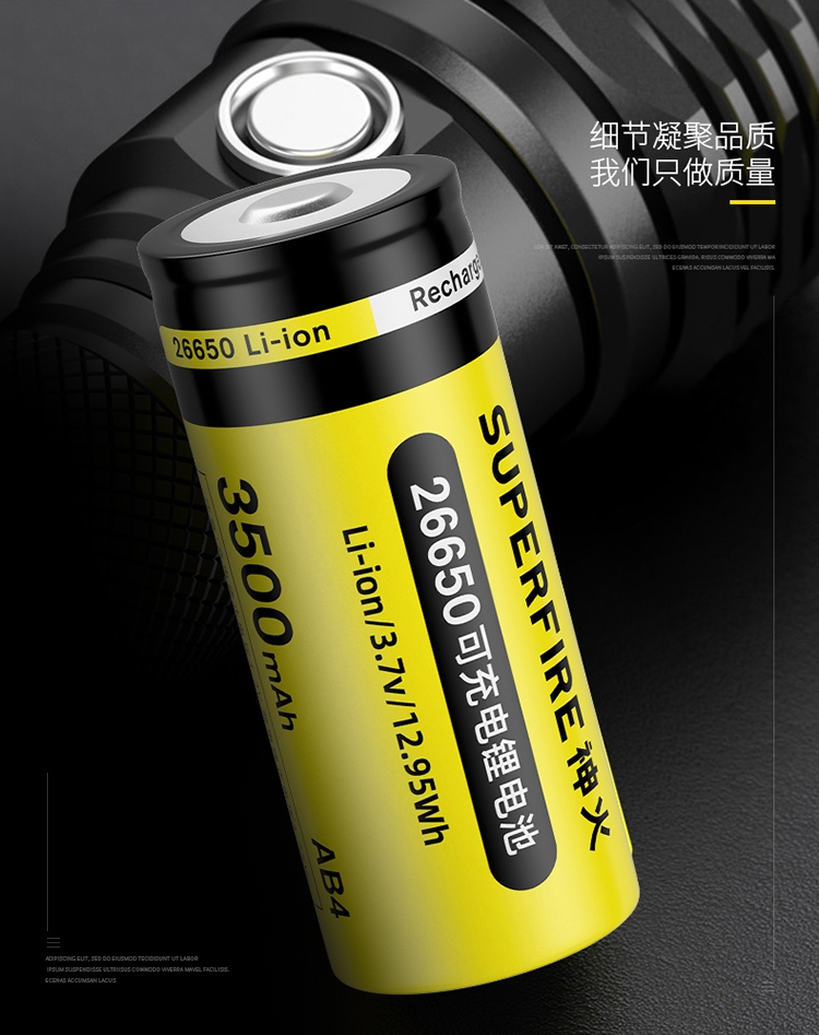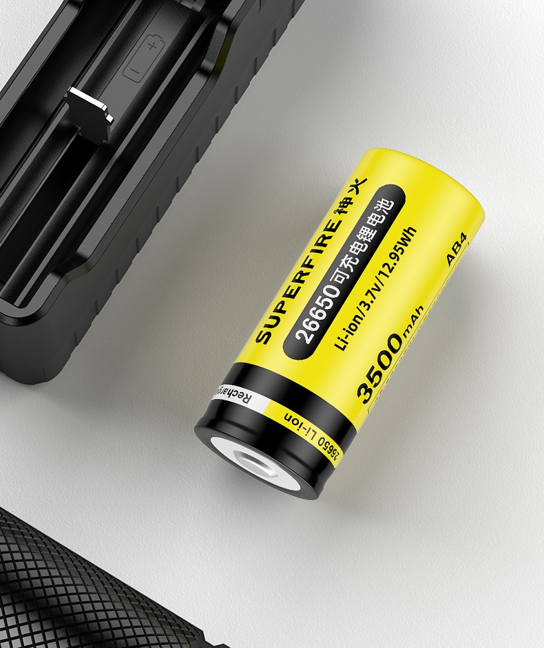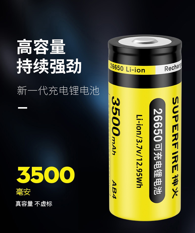 大容量電池;規格:26650鋰充電電池,3500mAh