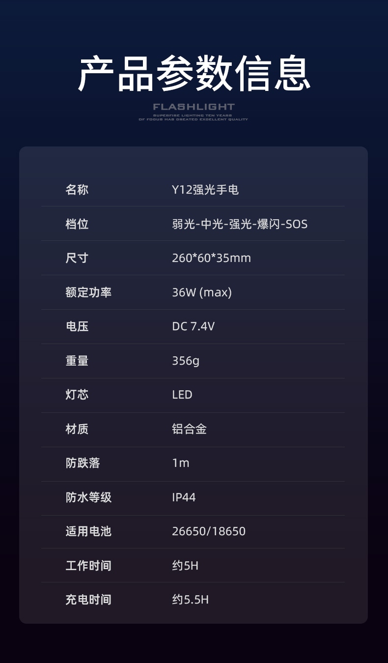 產品中心 > 戶外照明 > 手電筒 > 強光手電 > 中型手電 > SUPERFIRE神火36W大功率強光手電筒Y12