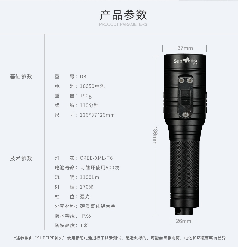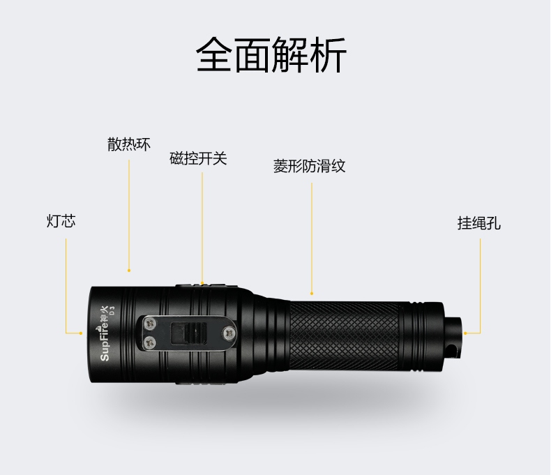 SUPERFIRE神火潛水手電筒D3