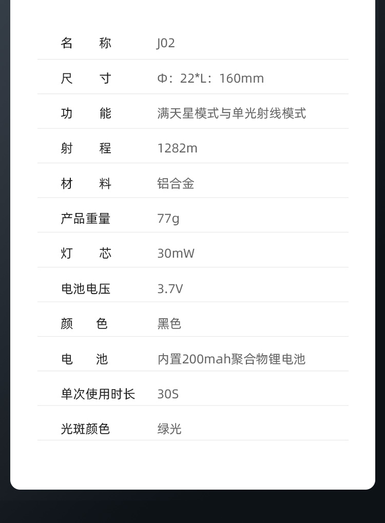 注:此激光筆單次點亮激光時長控制在30秒內,超時會影響產品功能及使用壽命