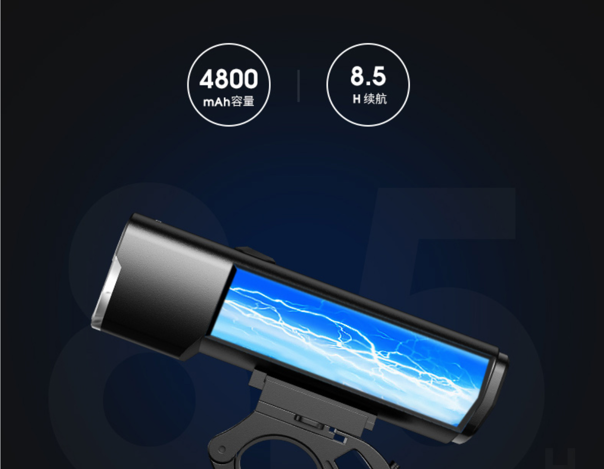 內置21700/4800mAh鋰電池,動力充足,遠光或近強光狀態下,可持續8.5H長續航,持久照明,盡興夜騎。