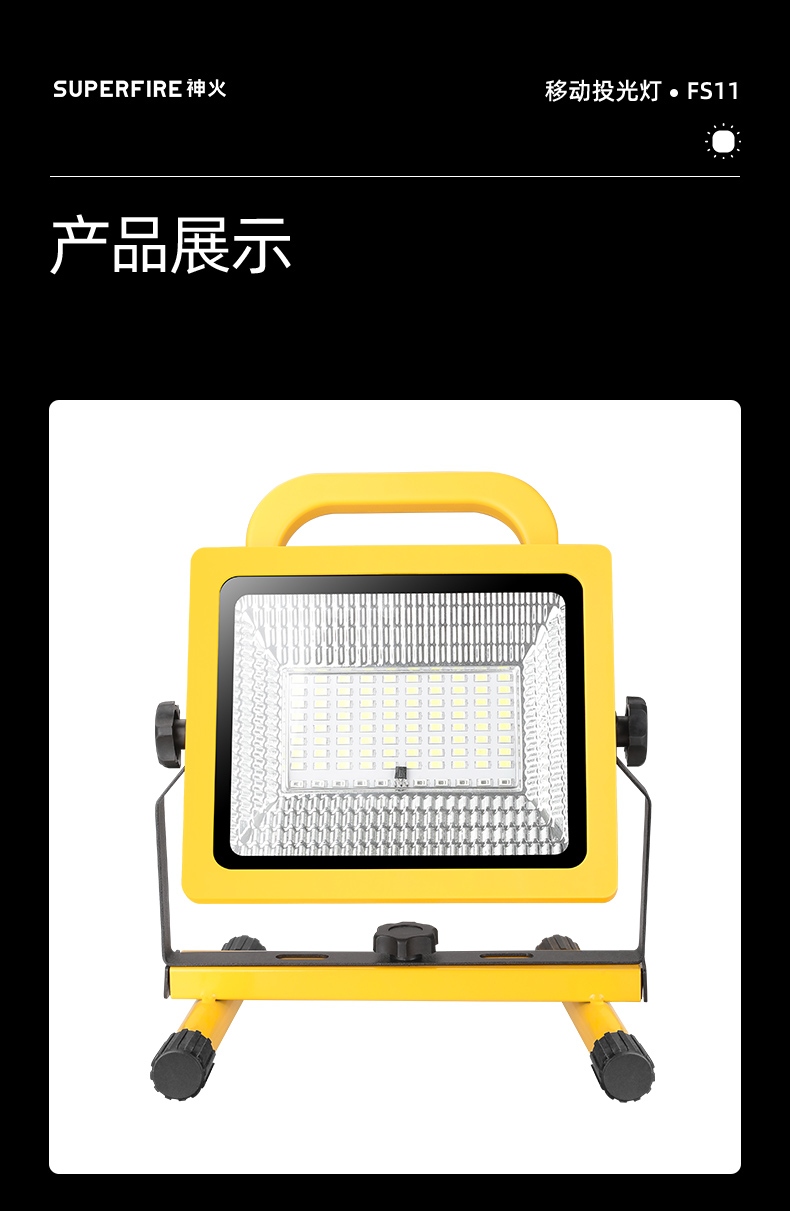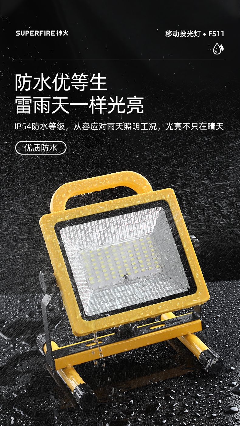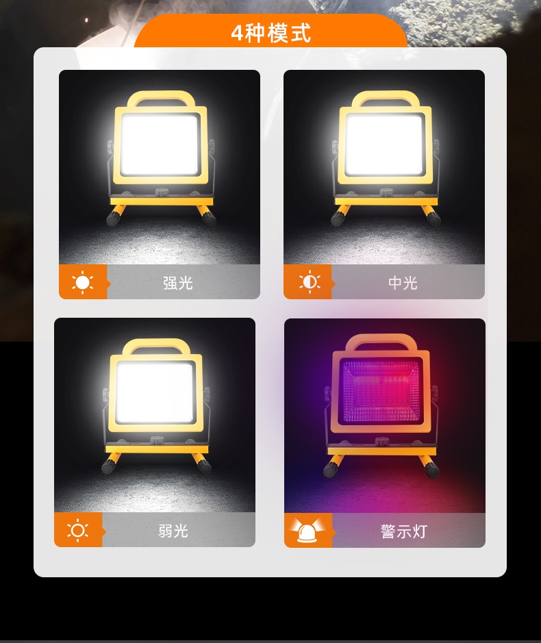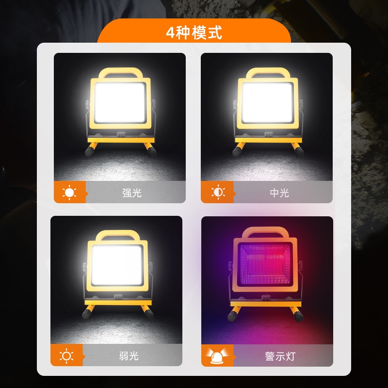 1、多檔調(diào)光,可滿足不同使用場景下的照明需求; 2、含提手,握感更舒適。攜帶更簡單; 3、新型高亮遠(yuǎn)射燈珠,60W大功率,亮度高,照明效果好。