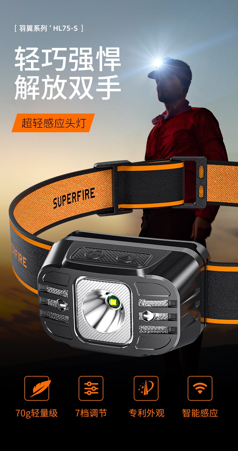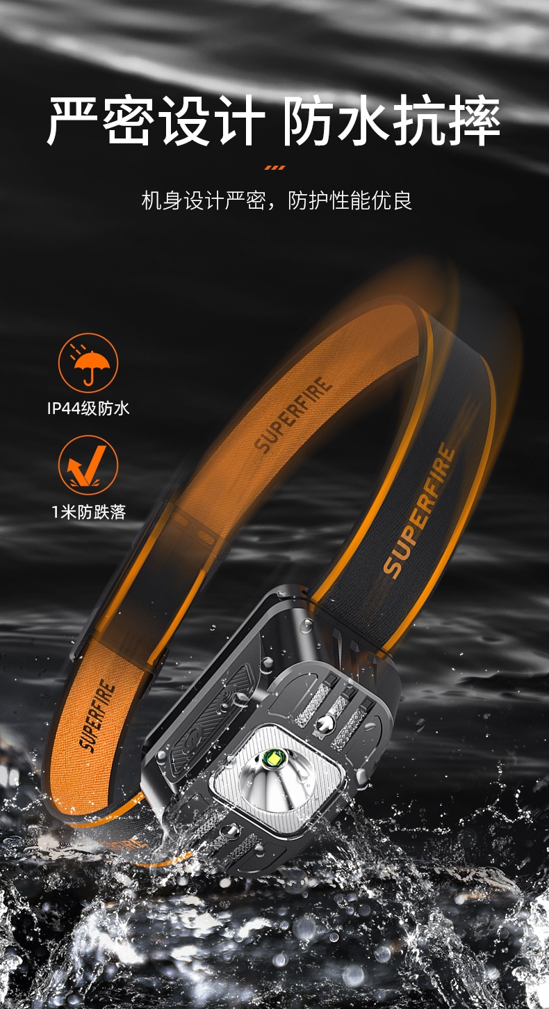 5、此款頭燈款式潮流、設(shè)計(jì)小巧、攜帶方便、頭帶材質(zhì)柔軟、可自由拆卸、便于清洗。